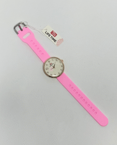 • The Life Time Rubber Strap Girls’ Watch (Pink with Stainless Steel Dial) blends durability, comfort, and style.